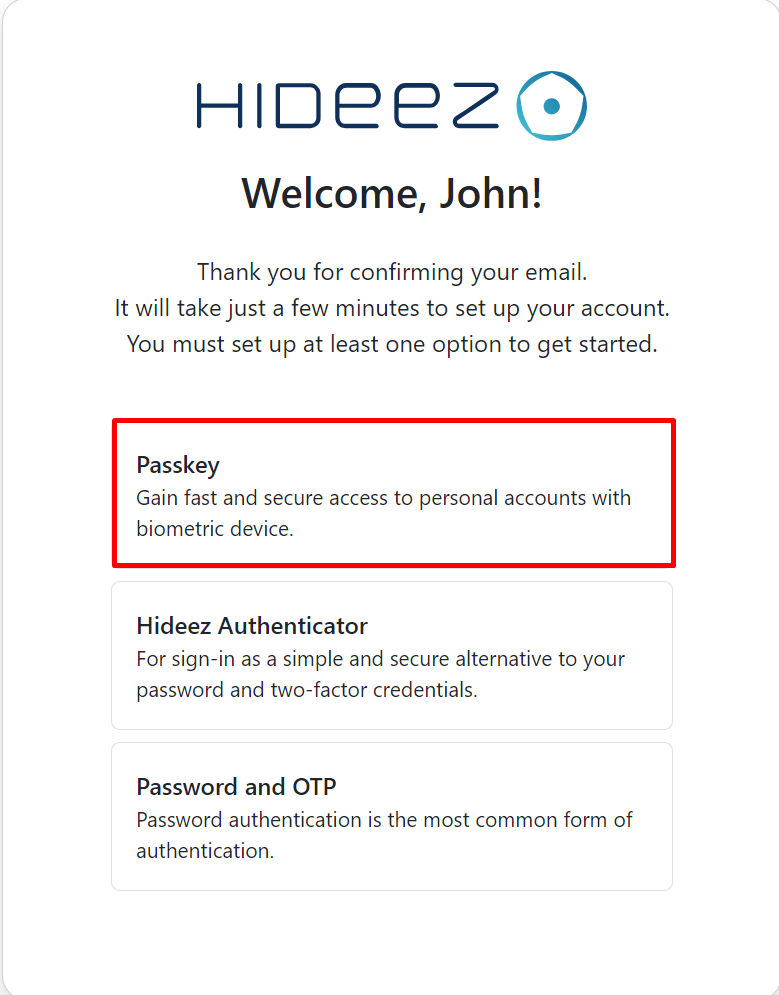 To set up FIDO Security Key as a login method for a web service using Hideez Identity Cloud, follow these steps: