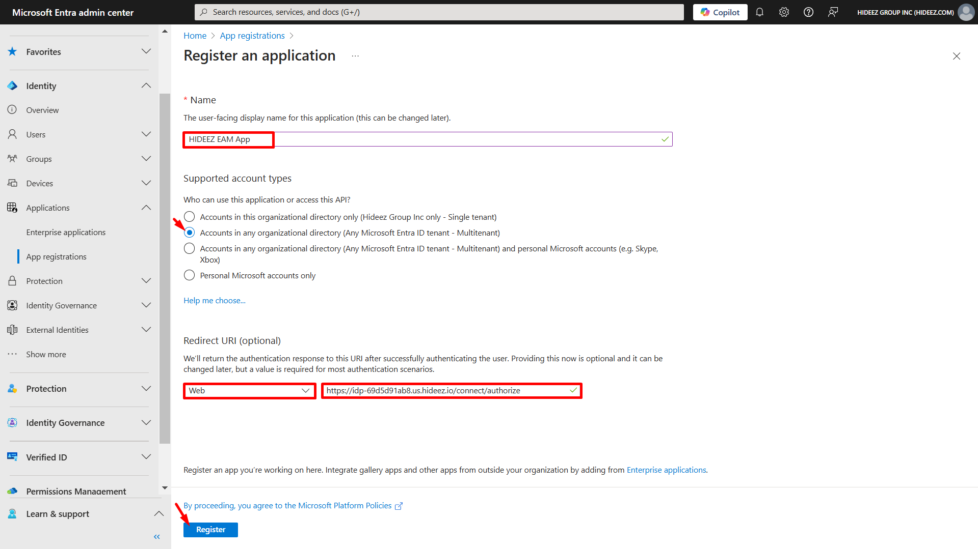 This guide provides step-by-step instructions to configure Hideez Identity Cloud as an External Authentication Method (EAM) for Microsoft Entra ID using OIDC (OpenID Connect). This setup facilitates seamless external authentication and ensures secure user login through an additional MFA (Multifactor Authentication) step.