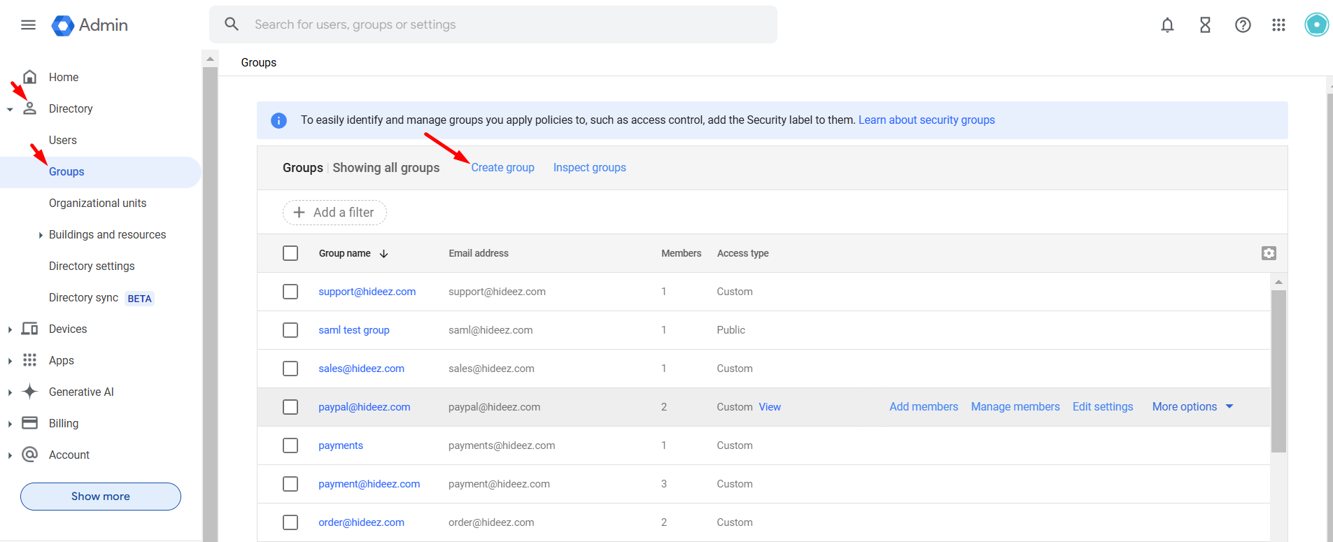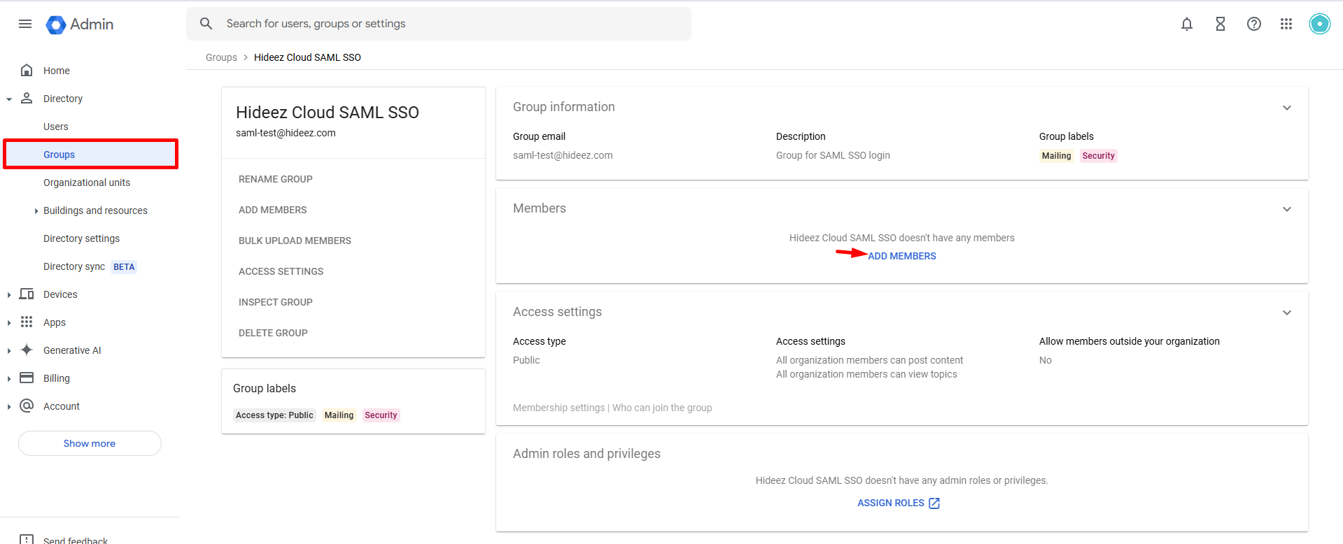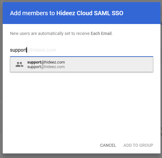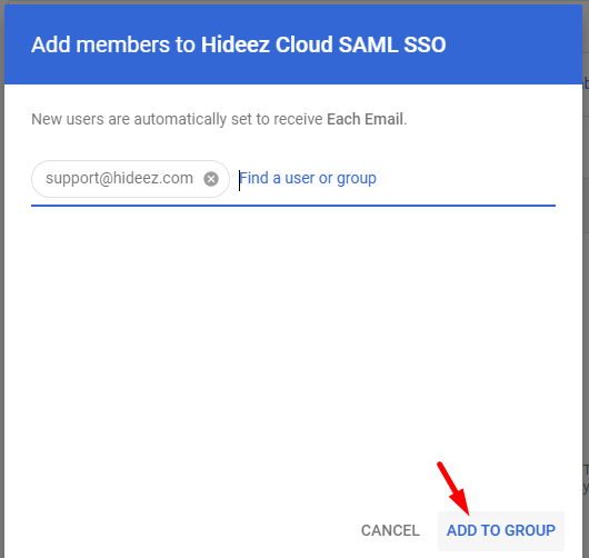 Select the newly created group and add users who will access Google services via SAML through Hideez Identity Cloud.