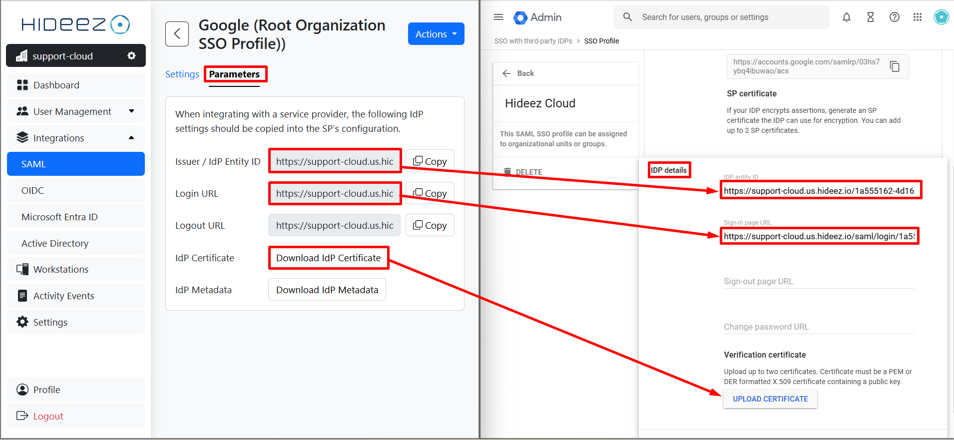Set up a SAML profile in Google Admin and Hideez Cloud.