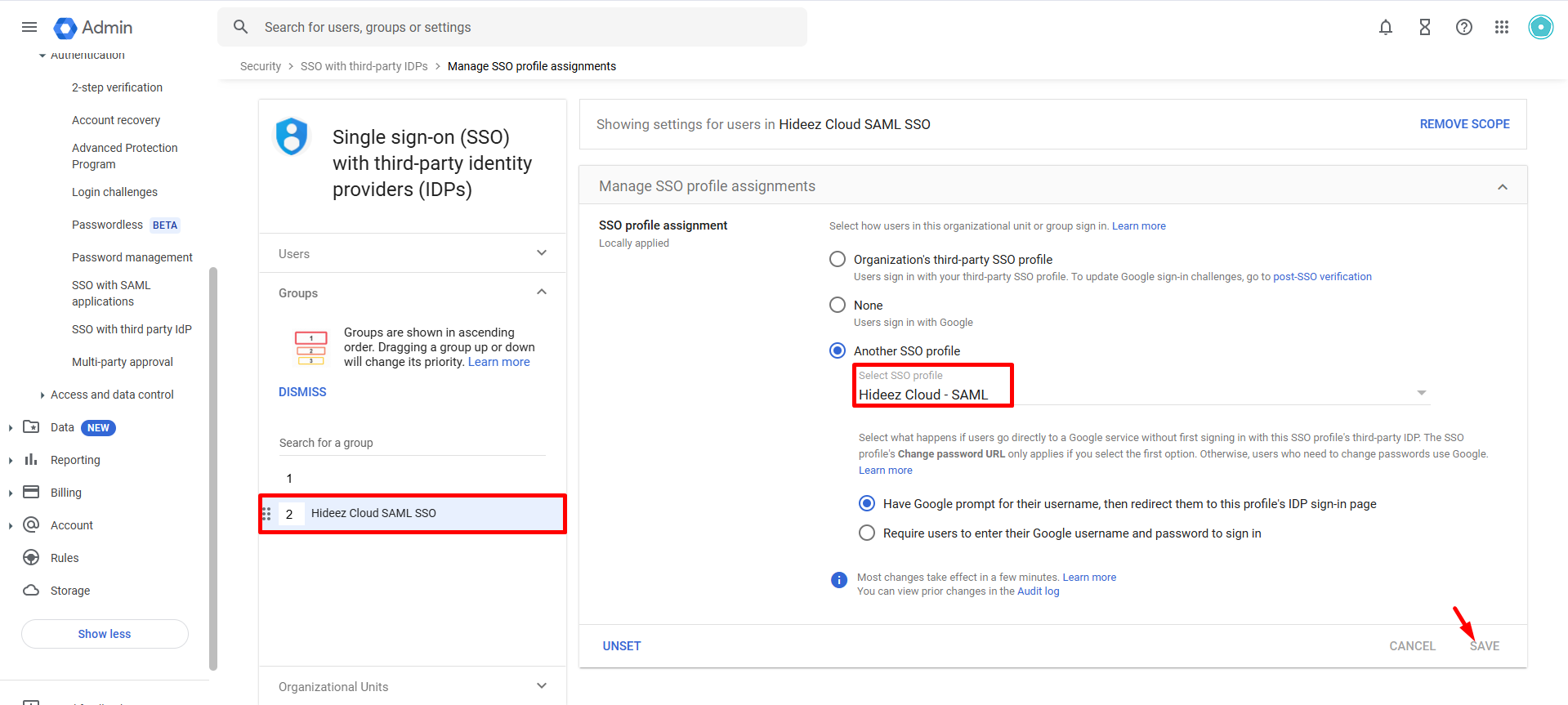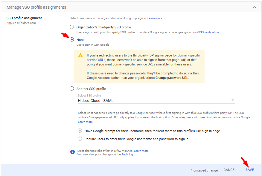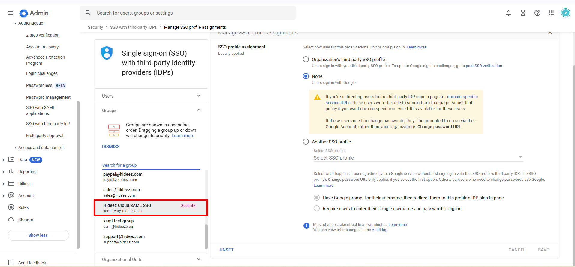 Disable Google Workspace Login via Hideez Cloud SAML