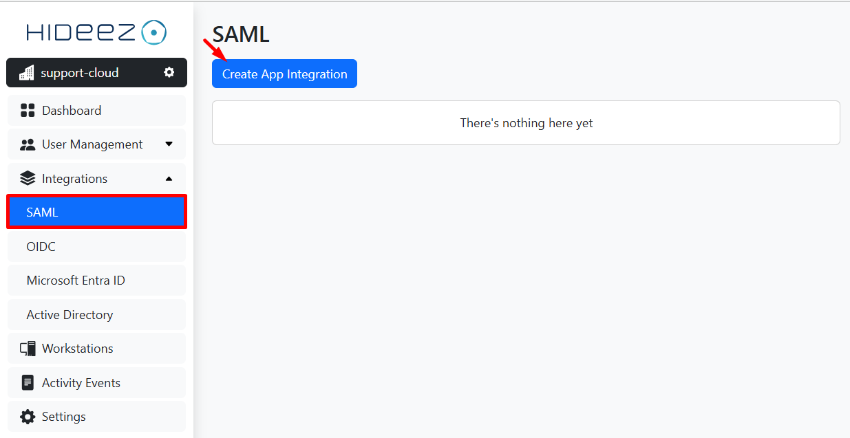 In Hideez Cloud, go to Integrations → SAML.