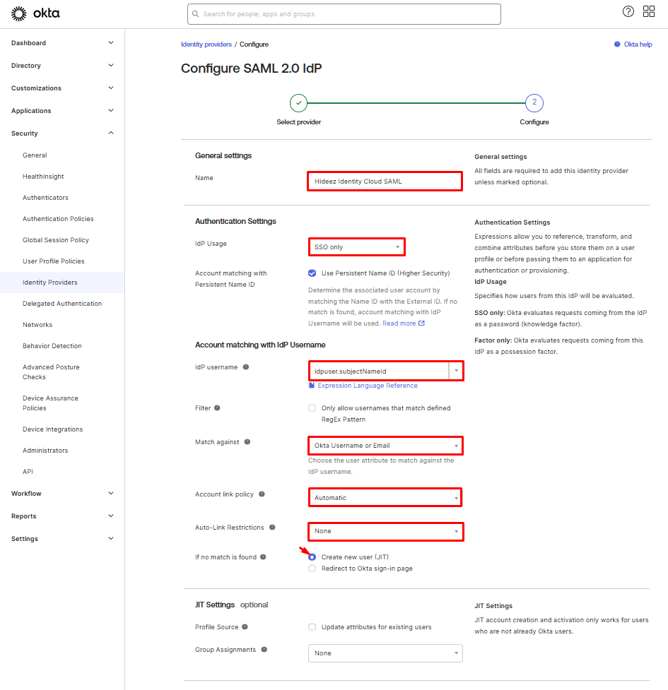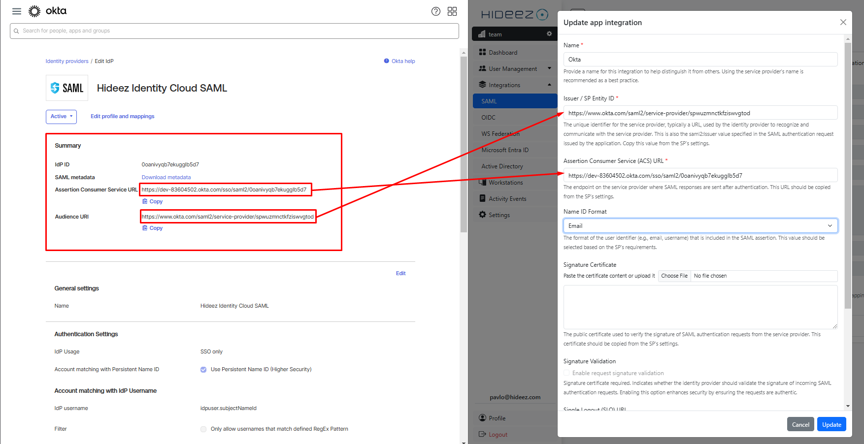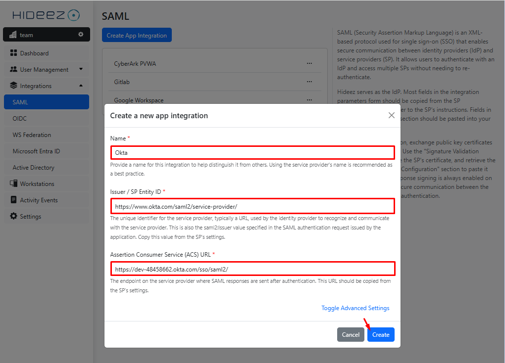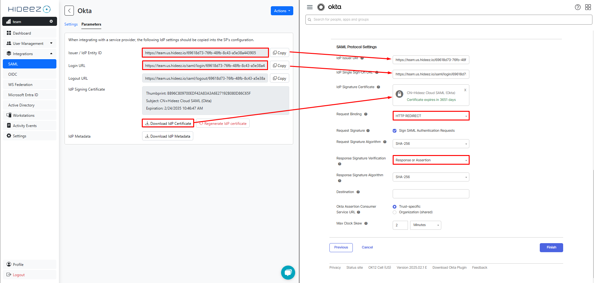 Hideez Identity Cloud - Configuration SAML 2.0 for Okta